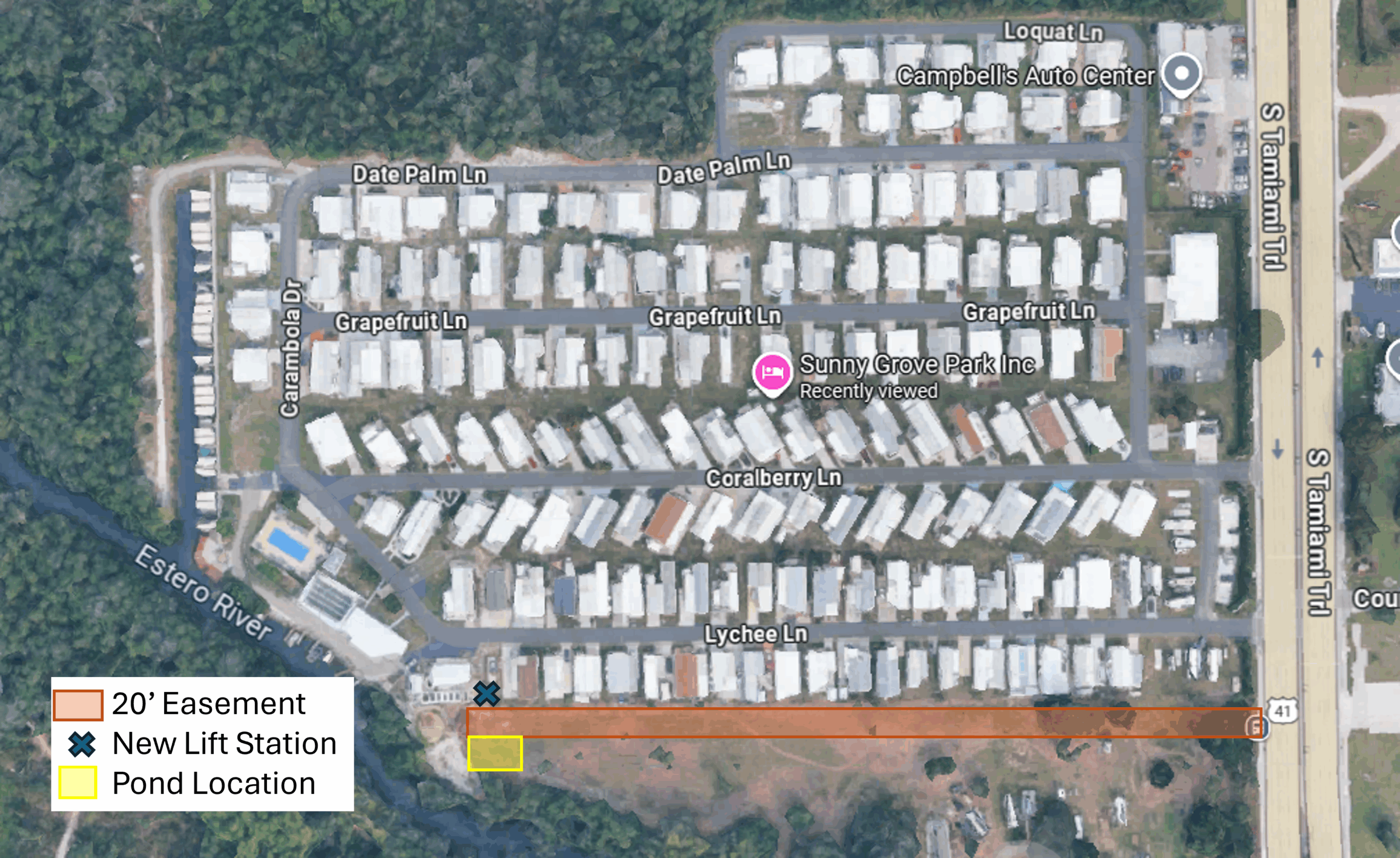 Village of Estero Utilities Extension Project (UEP) Cypress Bend RV Resort (UEP) Construction Click here to learn more about the Cypress Bend RV Resort UEP Click here to view the location Map Sunny Grove Park (UEP) Construction Click here to learn more about the Sunny Grove Park UEP Click here to view the location Map Broadway Avenue West(UEP) Design Click here to learn more about theDesign to Broadway Avenue West Click here to view the location Map Broadway Avenue East(UEP) Design Click here to learn more about the Design to Broadway Avenue East Click here to view the location Map